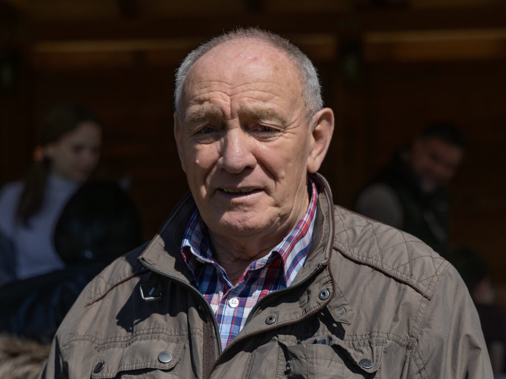 Деда Милета показује слику породичне задруге и на њој Марјана, првог пчелара у породици